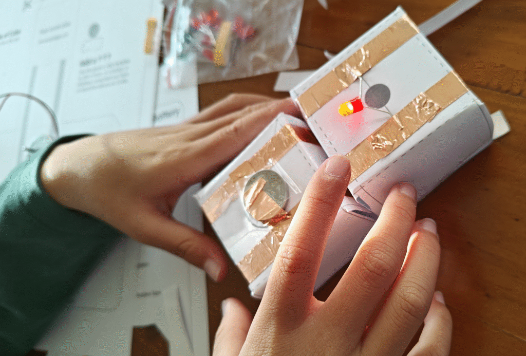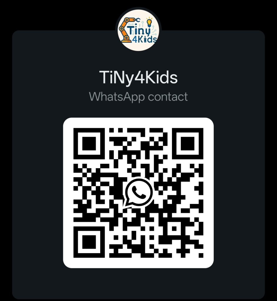 At TiNy4Kids, every project starts with imagination. Children learn to design, build, and test their own small inventions — from blinking lights to moving models. Each creation strengthens problem-solving and confidence, showing kids that technology isn’t just something to use, but something they can build themselves.